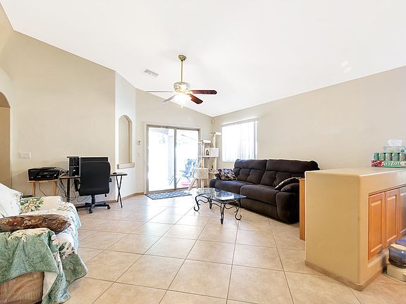 * This beautiful, 4 bed/2 bath home is located in the desirable Vail School District- tile throughout the kitchen, living spaces and master bedroom. The 3 additional bedrooms have brand new carpet and built-in storage in the closets and there are double sinks in the bathroom. The large master bedroom looks out into the amazing backyard- a sparkling pool with a working water feature, a spa and gazebo. New pool pump professionally installed 3 months ago, brand new water heater installed 6 months ago and the HVAC unit is less than 4 years old and has been serviced every 6 months since installation. This home has been carefully cared for, it is move in ready and waiting for you.