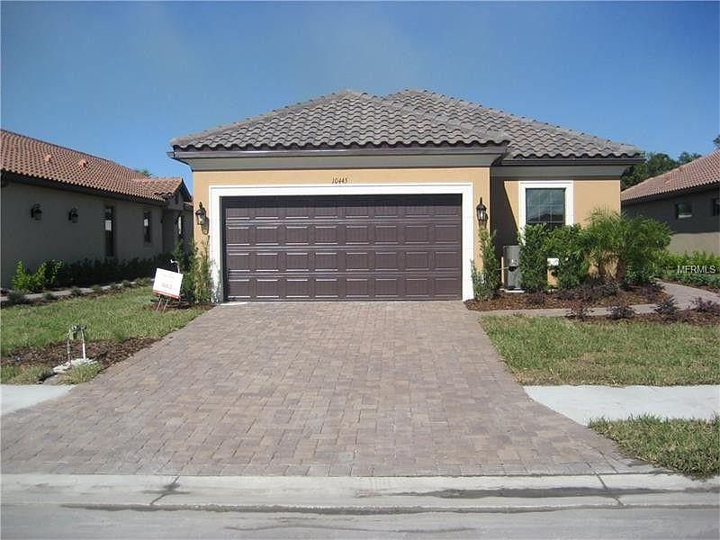 This single family home is located in Esplanade at Artisan Lakes. The home offers an open floor plan with dining room, three bedrooms, two bathrooms, den and separate laundry room. The home features trey ceilings, granite counter tops, dual sinks in bathrooms, tile throughout the common areas with carpeting in the bedrooms. Enjoy maintenance-free living, as all grounds care is included. Pets will be considered. (There would be a one-time pet deposit.) Within the community, there are lighted tennis and pickle ball courts, two amenity centers, and a pet park. The amenity centers offer a full gym, heated resort-style pools, spas, an event lawn, bocce ball courts, and a fire pit. There is a fully equipped kitchen for private use by reservation. There are many activity clubs and events coordinated by a lifestyle director and residents. Artisan Lakes is convenient to I-75 and I-275 with easy access to Tampa, Sarasota and St. Petersburg, as well as the Ellenton Outlets, University Town Center shopping, and top-rated beaches. The community is a five minute drive to Publix and there are other shops and restaurants nearby. $2600 is the monthly rent for a 12 month lease. A shorter term lease will be considered. (The $495 monthly HOA fees are included in the monthly rent. This includes high speed Internet and a generous cable package.) Tenant is responsible to pay utilities (gas, electric, and water). First month's rent, security deposit, and credit/background check are required to move in. The HOA also requires a $100 application fee.