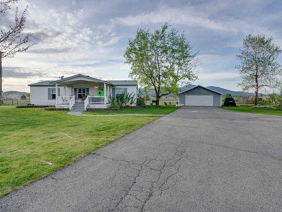 The current tenants will be residing in the subject home and 2 car garage until April 2019 when the lease agreement expires as they are building a new home. RENT IS $1450.00 PER MONTH AND ONLY INCLUDES THE HOME, 2 CAR GARAGE AND IMMEDIATE AREA AROUND THE HOME. The Shop and agricultural area are not included in the lease, allowing you to do with it as you choose.The modular home is set as real property and is 3 bedroom, 2 bath that has a stunning view of surrounding mountains, large 2 car garage and a 30x48 shop. The insulated shop can be heated by a wood stove and has a 12 foot doorallowing you to store your RV or boat in the winter. The property is also on its own well. Great opportunity to have some property in town and store your toys.