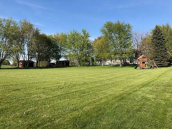 This beautiful 3 bedroom, 2 bath home sits on 1.5 acres with mature trees and breathtaking country views. It is in the desirable Fairfield school district and nestled between Goshen and Middlebury. It has a large front porch and a professionaly installed paver patio that overlooks the backyard and miles of country fields. This property comes with it's own private cabin fitted with bunkbeds and electricty. Also has a large shed and garden. The kitchen has quartz counterops and plenty of storage. You can find well-maintained hardwood floors throughout the house as well as a wood burning fireplace. The basement is partially finished and has a canning room. Pre-approved buyers can call 708-308-1579 to schedule a showing and for more details. Will consider buyer’s commission