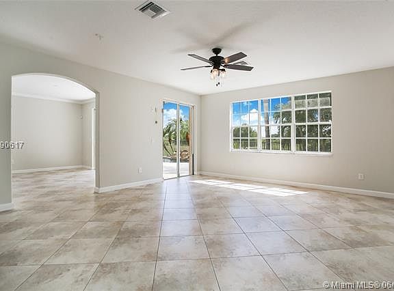 Spacious home located on a pie-shaped lot on a cul-de-sac with pool, water views and private backyard oasis - no neighbors behind you, but adjacent to nature preserve and lake. Vaulted ceilings and tile flooring throughout. Open concept kitchen with modern wood cabinetry, brand new stainless steel appliances including gas stove, pantry and island perfect for cooking. En-suite bedroom conveniently located on the first floor is perfect for guests. Oversized, bright master bedroom upstairs. Master bathroom with dual sinks, stand alone tub and separate shower. 3-car garage, large driveway and hurricane shutters. This is a lovely gated community with a clubhouse, pool, tennis courts, gym and a playground.