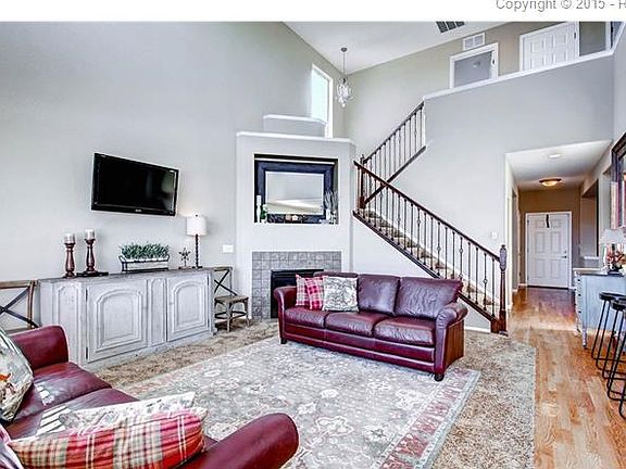 Beautiful home with Pikes Peak views! Spacious & open main level features a gorgeous gourmet kitchen with breakfast bar & large eat-in dining area, hardwood floors, formal dining & living room off the entryway, family room with vaulted ceilings & gas fireplace, & a main level bedroom. 4 bedrooms are on the upper level, including the huge master bedroom, which has a 5-piece bath & large walk-in closet with built-in shelving. Dual furnace & AC systems! 3-car garage with workshop space. Lots of natural light comes into the home! 1,131 sqft unfinished basement has huge potential! Backs to the Meridian Ranch Elementary baseball fields. Close to the Rec Center.