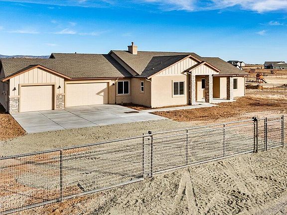 Situated on an elevated homesite, this newly completed single level home offers breathtaking 360-degree panoramic views set on just over 2 fenced and gated acres. The exterior highlights synthetic stucco with board and batten accents, adding to the home's outstanding curb appeal. Upon entering the home, you'll be greeted by a bright and open great room with a split bedroom floor plan. The great room's focal point is the floor-to-ceiling stacked-stone gas fireplace, high-volume vaulted ceilings, and a large 2-panel sliding glass door framing Mingus Mountain and Granite Mountain views. The chef's kitchen is a showstopper featuring granite counters, stainless steel appliances including a 5-burner electric range, and a window over the farmhouse-style sink providing natural light and views.