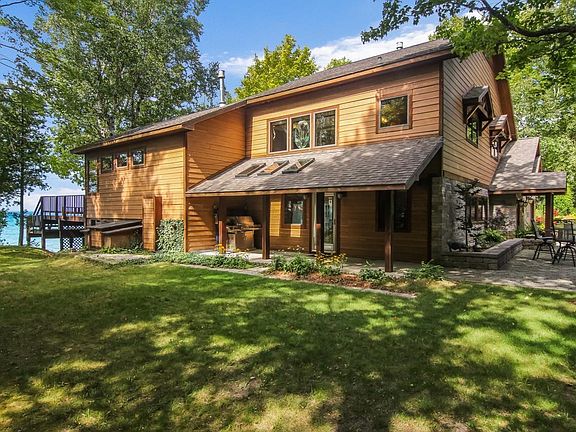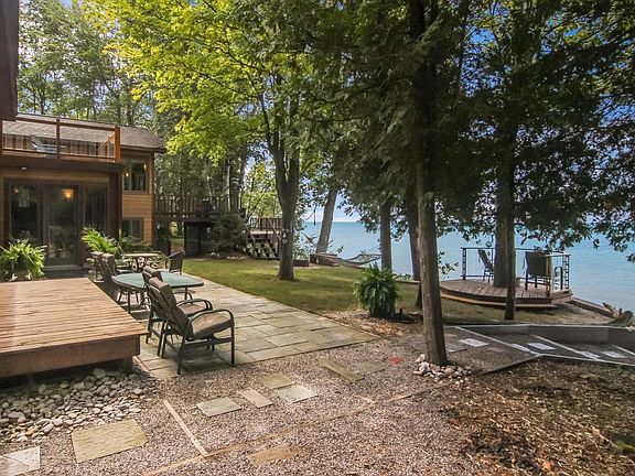 Premier waterfront setting with 175' of private frontage on Lake Michigan (Grand Traverse Bay), breathtaking sunset views, and a quiet, wooded setting at the end of the road. Property is bordered by the 156-acre Antrim Creek Natural Area, which offers maintained trails and a mile of shoreline. This 3-bed, 3.5-bath home has been immaculately renovated and maintained. Features include stainless steel appliances, corian, hardwood and tile flooring, custom cherry cabinets, solid oak doors, gas fireplace, whole-house generator and water views from nearly every room in the house. Extremely private setting allows you to relax and hear nothing but the waves!