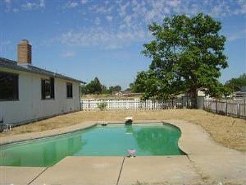 Bank owned ranch style home on almost five acres of level land. The home needs work but there is a lot of potential and the area is in the path of development. There is a built in pool in the back yard with some new equipment. Barns and outbuilding on site, permits unknown. Currently, approx two acres of the land is being rented by strawberry farmers which could be a good income stream. Their harvest is up in October and it will be up to the new owner whether they stay after. Call for details.