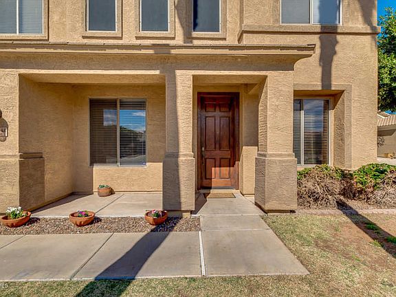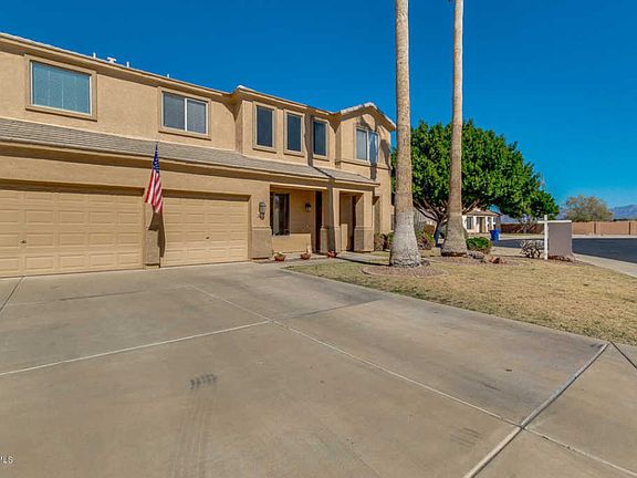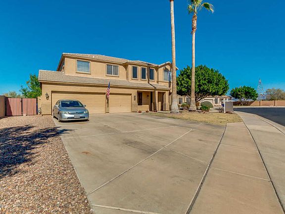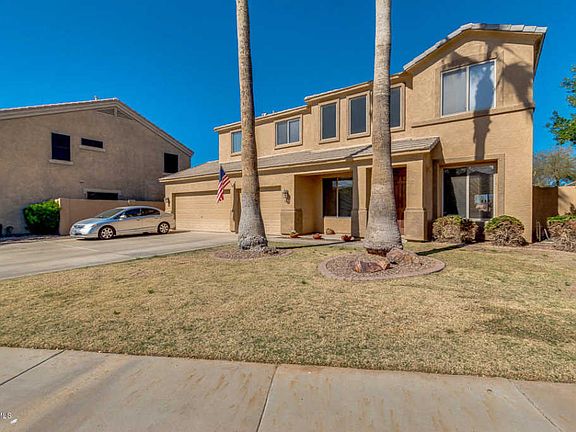 Fall in love with this stunning 5 bed, 3.5 bath home situated in a peaceful cul-de-sac! Walking into the home you'll be stunned by the beautiful stained concrete flooring that covers practically entire downstairs. The formal dining, currently being used as an office, is closed in by glass double doors on one side and saloon doors entering the kitchen. Speaking of the kitchen, who wouldn't love this one!? So much cabinet space and prep surface with the lengthy granite counters and a giant island. And don't forget the stainless appliances including a double oven as the warming drawer is also an oven. Downstairs there is also a HUGE second master with a private bath, walk in closet and built in entertainment center/dresser. Rounding out the first level is a deep under the stairs closet, large laundry room with built in cabinets, and a half bath. Plenty of large windows and the neutral paint throughout gives the whole house a light and bright feel. Upstairs you'll find a fantastic loft, nice bonus/game room/office, three bedrooms and a guest bath along with the master bedroom featuring a lavish bath with mirrored sliding doors in the walk-in closet, an additional closet, dual sinks, and separate tub/shower. Large backyard boasts covered patio w/extended pad, fenced blue pool w/boulder waterfall, slide & grotto, and great desert views. And don't forget the full 3 car garage with more built in cabinets and storage. All on an almost 13,000 sq ft lot! This house is in such a great location. Tons of shopping, a movie theater, and dining just a mile away and access to the 60 and 202 is so convenient! This home literally has it all!