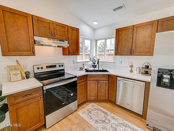 Completely remodeled 3/2 rancher in beautiful Hayden Idaho with a 2 car garage! Freshly remodeled! Updated kitchen with tile backsplash and brand new appliances. New LVP throughout the house with carpeted bedrooms. New lighting, fixtures, paint, and bathroom vanities. New exterior paint. New garage door since listing. Nice sized fenced-in yard. Listing agent has ownership interest.