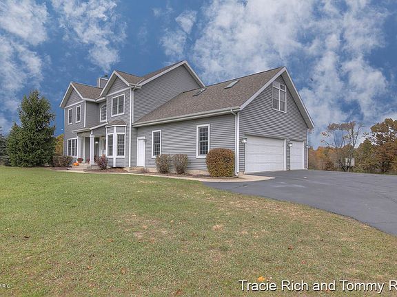 Welcome home! Settled on almost 6 quiet acres in Rockford Schools this 5 bedroom, 3 full bath home has been wonderfully maintained and updated. With hardwood floors leading to an open kitchen with huge center island and eating area w slider to deck, main floor laundry, 1/2 bath and mud room are all located off the garage. The huge living area with a centered fireplace and french doors leading to a large deck. Upstairs you will find 3 bedrooms, a master bedroom with a private bath and plenty of closet space. The lower level living room with a gas fireplace is a walkout to the expansive back yard, it has a large bedroom with a recently finished full bath and plenty of storage space. Along the right side of the property you'll find a 30' x 36' second garage for all of your additional toys.