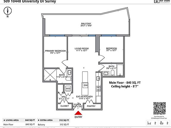 This 840 square foot apartment home has 2 bedrooms and 2.0 bathrooms. This home is located at 10448 University Dr #514, Surrey, BC V3T 0S7.