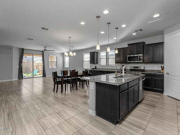 Your new home has finally come available! Located in the highly sought after Master Planned Community of Eastmark, is the ONLY house available in the community with a 4 Bed option with 3 Baths, well under $600,000! With a park view from the front window, view of The Superstion Mountains from the street, hidden splash pads and multiple parks within less than a mile! Most neighbors are excited for the new ''Farm to Table'' style resturant that is opening, within the neighborhood, next to the highly rated farm store. This neighborhood being located near the 24, 202 & 60 make getting in and out of the city seemless, especially with having Sky Harbor appox. 30 mins away! This is the chance to have the blend of intimate family living, with the big city not being hours away! Come get your keys!