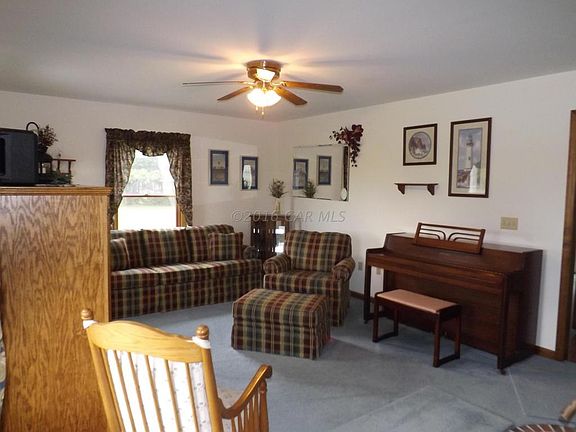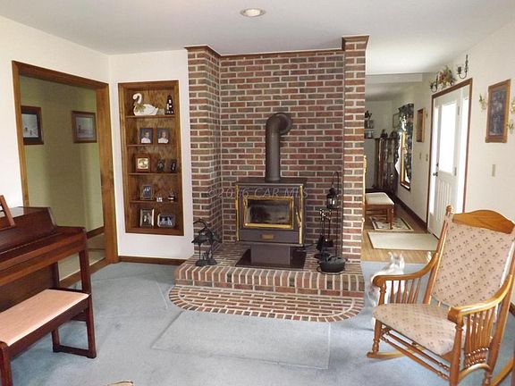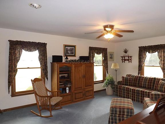 This custom built home on 8+ acres is a must see! It offers custom made Amish cabinets and vanities throughout, beautiful hardwood floors in the foyer, hallway and dining room. 2 x 6 construction, added insulation and 5 block crawl space. Enjoy the wood burning stove in the Living Room with its custom built ins for that added touch. The dining rooms opens to the eat-in kitchen so entertaining is made easy. The large 32 ft x 14 ft sun room has casement windows throughout and leads out to the hot tub and 27 ft round AG pool with decking. The over sized 36 ft x 56 ft climate controlled shop comes with an office, kitchen and half bath! Ample storage space with 12 ft ceilings and 10 ft doors. An additional Pole Building is 30 ft x 40 ft and offers additional storage.