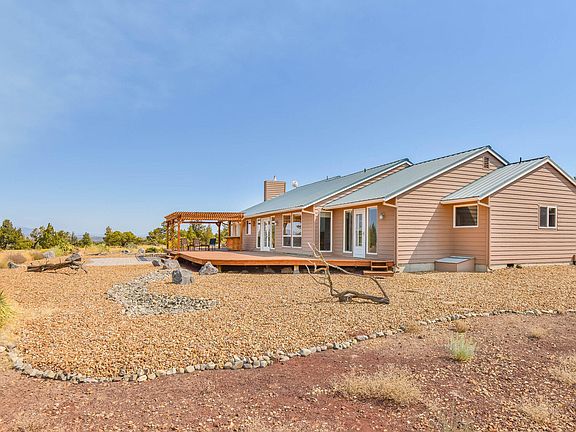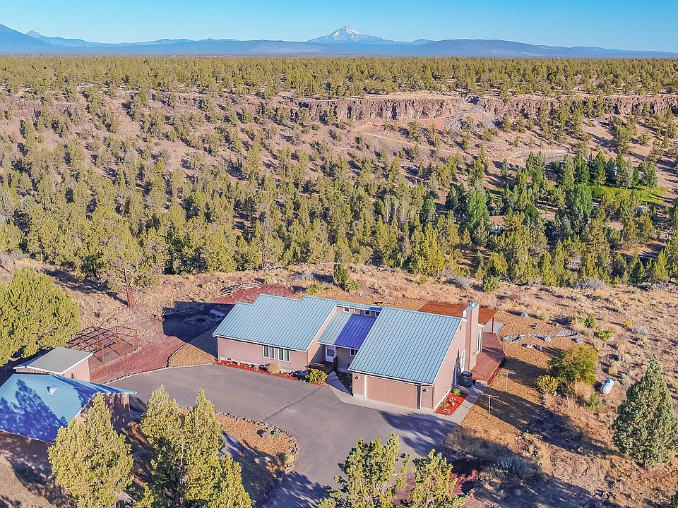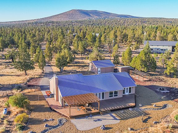 Come experience your slice of Central Oregon heaven in this single level home on 5 acres between Redmond and Sisters! Peace, quiet, privacy and mountain views abound on this cul-de-sac property which features vaulted ceilings, tile countertops, cozy gas fireplace, two separate living spaces, expansive view-facing windows, breakfast bar and separate dining area, large master suite with indoor sauna, jetted tub, and tile shower, two spare bedrooms, full hall bath, and a large laundry room with a sink, extra shower, and tile floors The property also includes a detached shop that has been converted to a guest bunkhouse with bedroom, kitchen, living room, full bathroom with tile shower and laundry hookups. Other exterior features include a storage shed, dog run, canyon and mountain facing back deck with pergola, custom paver patio overlooking the views, beautiful xeriscape landscaping, durable metal roof and plenty of room to park an RV and all your Central Oregon recreation toys!