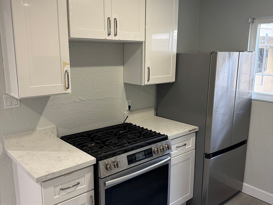 Fully Remodeled 2-Bedroom Apartment with Modern Upgrades Recently remodeled 760 sq. ft. first-floor 2-bedroom, 1-bath apartment with updated features throughout. Upgrades & Features: - Kitchen: New cabinets, countertops, fixtures, and stainless steel appliances, including a refrigerator and stove. - Bathroom: Fully renovated with a new tub, vanity, and fixtures. - Flooring: New flooring installed throughout the entire apartment. - Lighting: Recessed lighting in every room. - Paint::Freshly painted in neutral tones. - Parking: Reserved parking space included. Move-in ready. Get $500 off your first month's rent! Schedule a viewing today. Owner pays for garbage. Renter responsible for electric, gas and water. First month's rent due at signing.