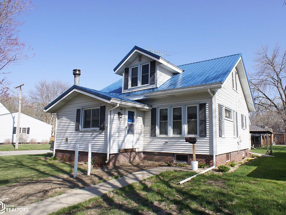 Charming 1 1/2 Story home with lots of great updates. Permeant exterior with vinyl siding, vinyl windows and new metal roof in '21. New sewer to the street in 2022. Seller is offering a $1,500 allowance for new front steps. Breezeway to nice 24 X 24 garage. Concrete patios in front and back. Back patio gazebo roof and patio carpet negotiable. Extra single garage with attached garden shed/dog kennel. Inside you will find a large living room with corner wood burning fireplace. Glass French doors to large dining room with lots of windows. Oak kitchen with nice tile backsplash. All kitchen appliances and window treatments can stay. Main floor bath remodeled with new walk-in shower in 2019. Den on main floor could be used as a 3rd bedroom. Upstairs are two additional bedrooms and lots of closet space. The basement has a nice laundry room with shower. Washer and Dryer can stay. Basement also has 8 x 10 bonus room and 11 X 15 family room. House is move-in ready!
