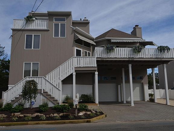 READY TO MOVE RIGHT IN... A SUNLIT home...featuring 5 bedrooms and 3 baths, WATER VIEWS of both the bay and ocean ... An open floor plan and lots of windows creating a very pleasant and inviting feeling and flow, both for summer or year-round living and entertaining... GRAND 3rd floor master suite for privacy,plus lower level family room and bedroom for overflow guests... Multiple decks ... ENJOY the cool breezes...All this just steps to the beach!!! This home has been elevated and renovated since Sandy.