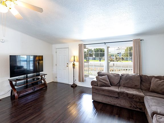 A Wonderful place to call home! This Manufactured beauty sits on over 1/4 acre & is close to schools & parks. Gorgeous interior, with TONS of Natural Light & Newer Laminate Cherry wood flooring throughout. Kitchen features bull-nosed countertops, glass-tiled backsplash, eat bar, skylights, breakfast nook, gas appliances... including a built-in microwave. LOW Maintenance yard w/ WAter feature, Raised Beds & Beautiful XL Covered Patio for year-round Entertaining. Plenty of room for all your toys w/an oversized 2-car garage, carport & two 8x12 Storage Sheds. PLUS room for an RV or 2 w/50amp hook-up & access to septic disposal. Newer roof (10yr) & Furnace (7y)