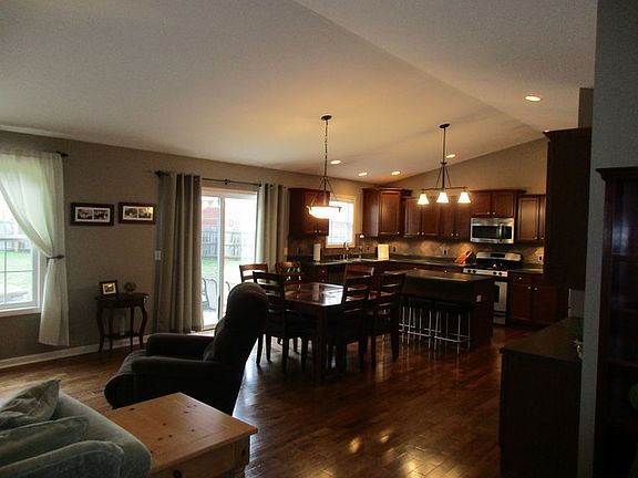 Open floor plan ranch in the vineyard subdivision! 3 bedrooms and 2 full baths. HUGE fenced in yard with lots of trees, custom patio with stone wall and pillars. Maple flooring through out the main floor and maple cabinets in the eat in kitchen. Stainless appliances all remain, beautiful back splash, large island, and planning desk. Central vac, wood floors in master, walk in closet, and double vanity. Great landscaping and very well maintained!