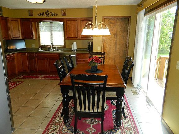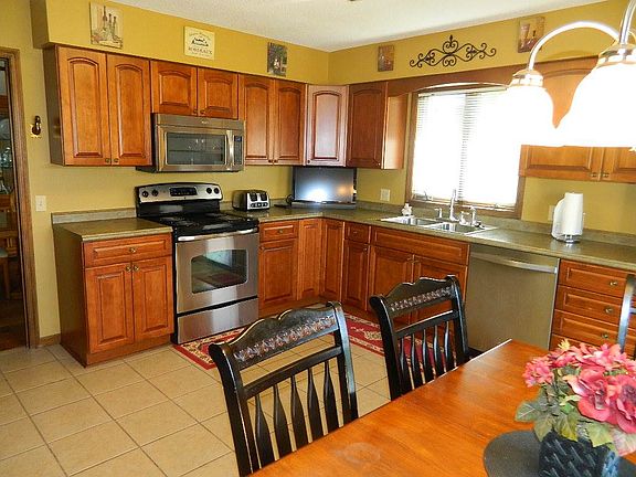 Nicely maintained home across from the Elks Golf Course. Tiled foyer leads into living room area. Fully equipped eat-in kitchen with stainless appliances. Walk-in closet in master bedroom. Main level baths have been recently updated. Formal dining room with hardwood flooring. Finished walk-out basement has a full bath, rec room, brick fireplace and family room with bar area. Pool table in basement included in sale. Home warranty provided by seller.