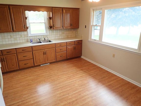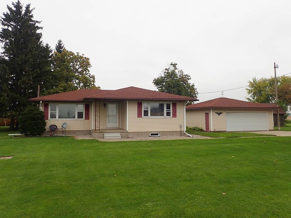 Enjoy country living on just under an acre with no neighbors behind in this quaint 3 bedroom Monitor Township ranch. This home is ready to move right in with fresh paint throughout, new carpet in the bedrooms and living room, and a high efficiency furnace and central air to keep you comfy in all seasons. You'll also find storage galore in the full basement, the 2 1/2 car (26 x 24) garage, plus a 14 x 21 shed with lean to. Most of the windows are vinyl as is the siding, a maintenance free exterior. City water and natural gas. Actual lot size is 310' of frontage and 175' deep.