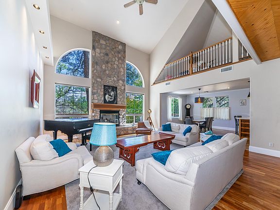 Location Location! This charming home is spacious, elegant, and cozy all wrapped into one. The street is awesome. Its located in the pines and oaks and is extremely quiet. Very little traffic, yet very close to downtown. Large country kitchen with island and bar. The backyard is serene! Perfect setting for stargazing at night. Features include wood floors, large stone fireplace, fireplace in den, large room upstairs could be used as a number of things including guest quarters.Master on the main level. Recent upgrades include new kitchen quartz counter tops, hardware and light fixtures. New hardware in all bathrooms, new XL washer/dryer, new extra wide baseboards. Installed extra large barn doors in the TV/guest quarters room. 2018 New carpet in living room, master bedroom and stairs.