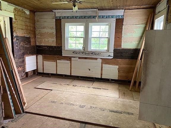 Great location! Within just a few minutes from town sits this cozy 2 bedroom, 1 bath cottage like A-frame. Lots of character, central H & A system (needs hooking up). This home just needs finishing out inside to suit your own taste! Sits on 1+/- acre, unrestricted. Lots of Pella windows, newer central unit & roof, all within the past 7 years. Sold "As-Is".