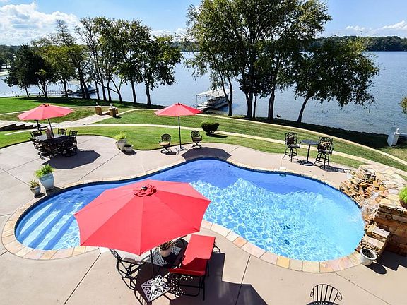 Ideal for 2-family living (multiple living areas), 2 kitchens, separate entrances. With emphasis on quality, this magnificently renovated beauty features 4 bedrooms, 5.5 baths, 2 wet bars, 5 fireplaces, (4 inside, 1 outside), marble, Italian tile, handmade copper soaking tub, 2 ice machines, 16 rooms, lake view from every room except 1, media room. Custom lakefront. Tuscan iron entry door, pool, grand outdoor living areas. Heavenly sunsets and views! NO SIGN ON PROPERTY!