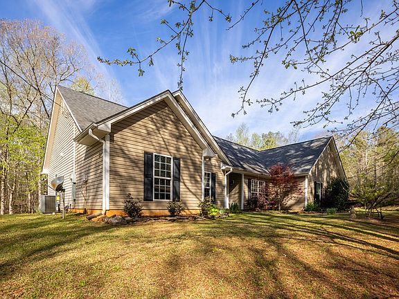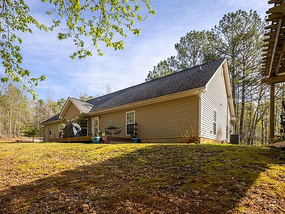 Nestled in the middle of three secluded acres this property features a continuously flowing winding creek bordering the property. This home offers an open floorpan with the kitchen and breakfast area open to the great room. LVP flooring flows through the entire home except for the bathrooms and bedrooms. Kitchen has granite counters, stainless appliances, breakfast bar and breakfast area with bay windows with an incredible view of the outdoors. Master suite offers his and her closets, double vanity, garden tub and separate shower. To enjoy all the outdoors this property has a back deck, a pergola, and a great entertainment area under the trees by the creek.