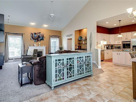 Beautiful four bedroom,three bath home located in a wonderful neighborhood. Nice open floor plan, kitchen with granite tops, center island with cook top, stainless appliances including a double oven, tiled back splash and tiled floors. Cathedral ceilings in the dining and living room which are open to the kitchen and makes entertaining a breeze. Wet bar and gas fireplace in the living room. Master with tray ceiling, walk in closet an en suite bath. There are two additional bedrooms and full bath in their own wing . First floor laundry .Huge finished lower level with bar, additional bedroom and full bath. Great space for entertaining, Sunday game day or could be made into an in law suite. Additional room that is great for a workshop or storage. Updates include lower level bedroom, bar, full bath, double oven (16),cook top(19),furnace A/C (18),lower level carpet(18),HWH(20). Simply unpack ...and make it your home. Great location and schools.