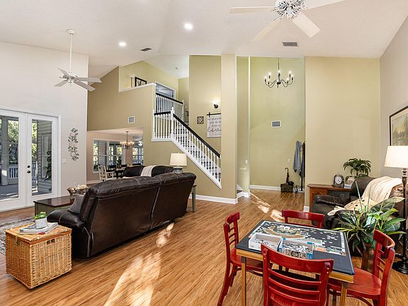 Nestled in the privacy of the trees, this extraordinary residence is more than just a house-it's a member of the family. HUGE, screened porch for countless gatherings and laughter. You simply MUST NOT MISS this one. Unique features include, wall mounted ironing board, dumb waiter, 2 fireplaces, golf practice area and hurricane room. Cathedral ceilings and huge windows fill the space with natural light. 832 sq foot garage with extra high ceilings, overhead storage, and workshop. RV parking w/ water and electricity. Whole house Generator. Flex space with separate entrance and kitchenette. Roof 2019. 2 central HVAC units & a mini split. Ground floor is CBS w/ 4 in. poured concrete ceiling. In the primary suite, soak in the jetted tub, brew your morning joe at the coffee bar and sip it on your private balcony. It's not bricks and mortar that make this house a home; it's the love and memories that fill its rooms. Come and weave the tapestry of your own family's history.