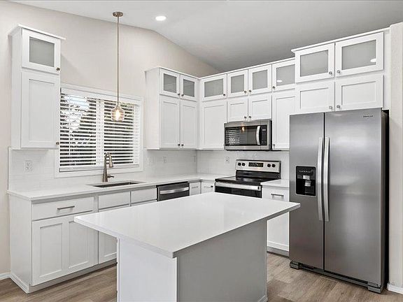 Completely remodeled home with the finest of (white) kitchen cabinets, quartz counter tops, fantastic island, high end appliances including washer and dryer. There is a nice formal living room off the front entry and a dining area off the kitchen along with a family room with a fireplace all with new high end flooring. The front bedroom off the entry can be used as an office (if using as bedroom the closet is not big). The secondary bedroom is good size (just noticed that the lawn mowers flipped a rock into the window and being repaired immediately) and the primary bedroom is large with an ensuite bath and double sinks. The garage is a 2 car with the 3rd car area used for storage. There is Boat access on the left side of house (see in photos). This home is near the Eagle Hills Golf Course and it is a beautiful neighborhood. No application accepted without viewing the home, perfect credit required or one year rent in advance for poor credit. Hurry it will rent fast.