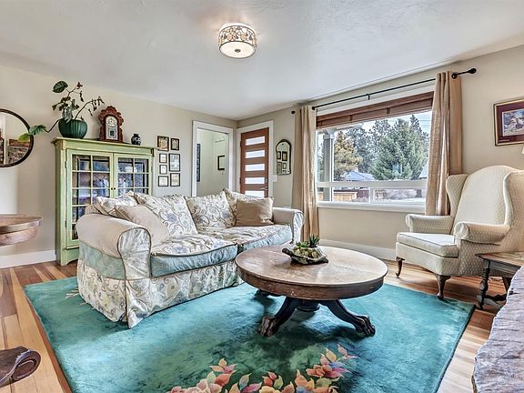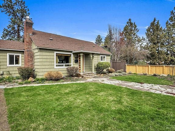 Beautifully updated 1940's classic cottage in desirable Midtown near schools, shopping, coffee shops, parks, Pilot Butte and Juniper Swim & Fitness. Gardener's paradise with beautiful flower beds, perennials, mature trees, sprinklers, private paver patio, hot tub and brand new fence. Charming great room with wood floors and gas fireplace, 2 bedrooms on the main floor, 1 bedroom and bonus room upstairs. Large dry basement (not included in sf) Oversized detached 2 car garage with long flat driveway!