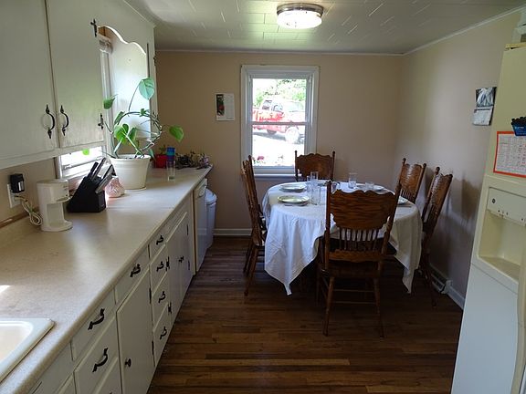 Enjoy easy living in this charming ranch home; this natural home features hardwood floors, an updated bathroom, heat pump and an eat-in kitchen designed for cozy dinners. Full basement with interior and exterior access; storage galore and a sink that would make a great workshop area or place for canning. Currently the laundry room was moved upstairs into one of the bedrooms, per the seller it could be moved back to the basement! This home has multiple possibilities as a vacation get away, a rental, or your everyday home.