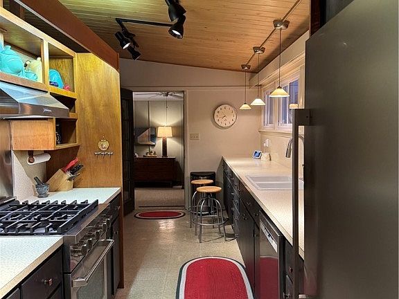 Welcome to this extremely well maintained 3-bedroom, 2 bath ranch located in Saybrook Township! Built in 1962 this Mid-century modern home is a must see, the plans of which were pictured in Better Homes and Gardens in 1954. The owners have kept so much of the original character of the home. The kitchen has been updated with newer appliances, beautifully painted cabinets with new hardware. Inviting Enclosed breezeway with nature stone floors, gas fireplace for the winter and air conditioning for the summer. New lighting throughout the home. The whole house has radiant floor heat, with a new boiler. 4 mini split air-conditioning units, with a total 30,000 BTU's. Attached garage with a kitchen in the garage! All appliances in the garage stay. Nature stone flooring and a new gas heater in the garage. Newer attached wet vac in garage to vacuum the garage floors or your cars. Automatic landscaping lighting with timer. New gutters. Newer shed out back with electric. Inside and outside of the home has been painted within the last 3 years. Backyard is nice for entertaining. Sit on the back patio or enjoy the swimming pool that is heated. Backyard also has a enclosed dog run for your fur babies. Home has a gas generator, that conveniently comes through the laundry room with 6 outlets for easy hookups. If you're searching for a spacious well maintained ranch, this may be the home for you!