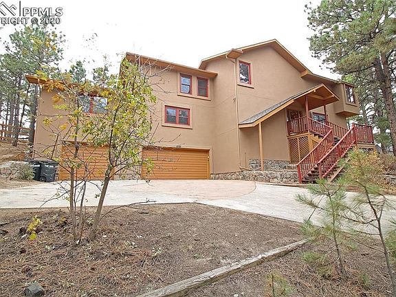 This beautiful home at the end of a cul de sac is set on a heavily treed 0.5 acre lot which offers privacy and views of Pikes Peak. This two story home has 3 levels and consists of 4 bedrooms, 3.5 bathrooms, media room and a 3 car garage. UPON ENTRY PLEASE BEGIN YOUR TOUR ON THE UPPER LEVEL TAKING IN THE OPEN FLOOR PLAN AND VAULTED CEILINGS ON THIS LEVEL! The main level consists of 3 bedrooms, 2 full bathrooms, an expansive family room and a wet bar. The upper level consists of the master suite with a five piece bathroom and walk in closet, living room, upgraded kitchen, dining room, Pantry/Laundry room and an additional half bathroom. The lower level consists of a workout room/shop area, 2 storage areas, and a small office/hobby room. There is also a media room which is located off the main level which features movie seating for 6 people. The kitchen has been upgraded with 42 inch upper cabinets, tile back-splash and granite counter tops and stainless steel appliances. The home features a large upper and lower deck which are 36' x 10'. These areas are perfect for outdoor entertaining. There is also a gas fire-pit off the lower level deck for those chilly nights. The back yard is fenced in which is the perfect area for children and/or pets to play safely and a basketball hoop. This home is located within a mile from Fox Run Regional Park which is the perfect area for hiking, biking, a dog park and general family fun! The home is very close to shopping and I-25 interstate but is very private.