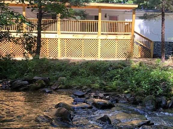 300' NOISY FODDER CREEK FRONTAGE!! Must see to truly appreciate this one of a kind creek front lot. 2 bedroom/ 2 bathroom mobile home on .49 acres. Large front deck and large RV pole barn. Many new features including: paint, front deck, kitchen back splash, vanity tops and sinks, freshly seeded front yard, fresh gravel in driveway. Come enjoy the mountains while listening to Fodder Creek on your relaxing front porch!