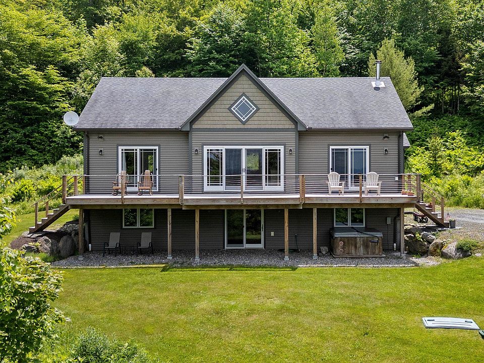 Nestled in a private, secluded setting with stunning views of Mt. Mansfield and the Stowe ski trails, this beautifully maintained 2015-built home in Waterbury offers the perfect blend of comfort, style, and convenience. The open-concept main living area features a wood stove for cozy evenings, while large windows bring in natural light and frame the mountain views. The chef’s kitchen is equipped with a professional-grade stove, oversized island, walk-in pantry, and an adjoining prep/bar area complete with a wine and beer cooler—ideal for entertaining. The spacious primary suite includes a luxurious bathroom with a soaking tub, walk-in tiled shower, large walk-in closet, and a mini-split for added comfort. Radiant heat runs throughout the home, complemented by an energy-efficient HVAC system and owned solar panels. The walk-out basement offers a workshop and ample storage, while a welcoming mudroom adds everyday convenience. Step outside to the expansive deck, unwind in the hot tub, or gather around the outdoor fire pit. Located just minutes from I-89, skiing, hiking trails, and the Waterbury Reservoir, this property delivers the best of Vermont living with comfort and privacy in mind.