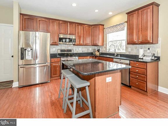Impeccably maintained and beautifully appointed home that is move in ready!! Excellent curb appeal with stone accents and new brillant red mission style front door. Hardwood flooring on first floor except for great room which has new carpeting. Spacious kitchen with quartz countertops and imported tumbled marble tile backsplash. Natural cherry cabinetry and large center island ; stainless steel appliances and gourmet faucet with deep sink; pantry ;large slider with transom window complete the kitchen with access to deck and large patio--great entertaining space!! Great room has triple windows and new stacked stone floor to ceiling fireplace--what a beauty! First floor office and dining room wonderfully sized and half bath complete the first floor. Mastersuite stylishly designed including a walk in closet. 3 additional bedrooms and hall bath complete the second floor. Glass french door leads to nicely finished lower level with family room including egress window and laundry room. Premium Backyard space with deck, large patio and abundant trees beyond yard. Jerith enameled aluminum fenced yard. Yard extends beyond fenced area. central vac, water softener, shed
