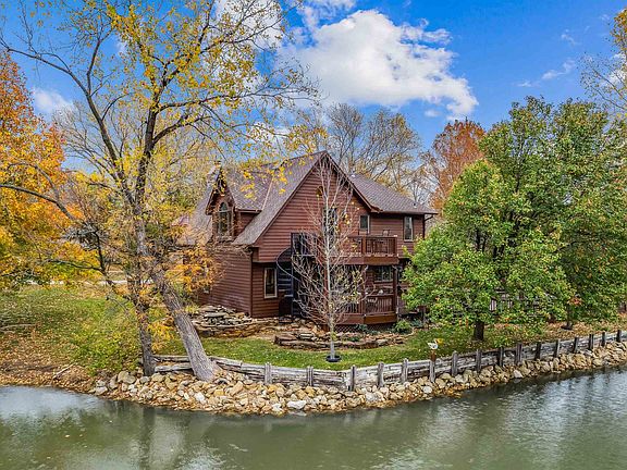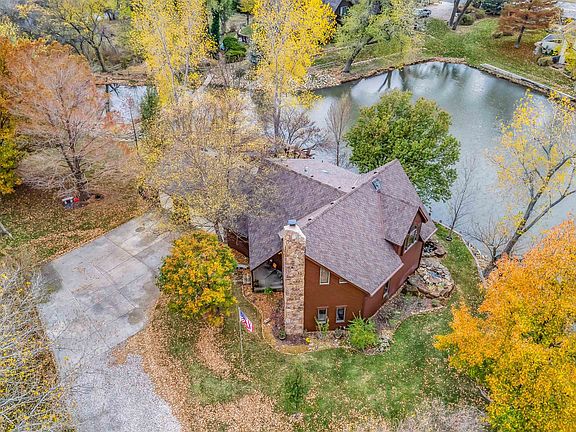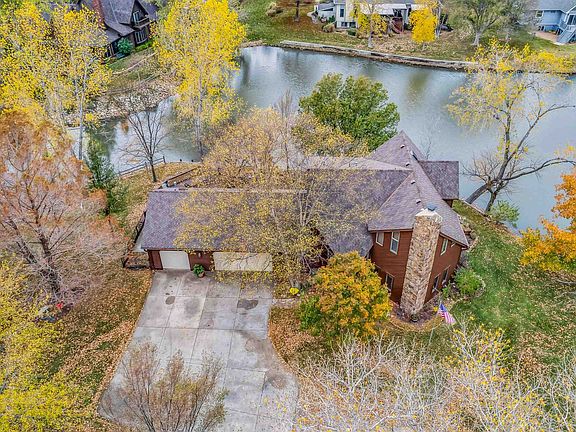 Contract fell through due to buyer job situation. Want to feel like you are living in a vacation home right on the water, but still be in the city? 1045 S Dowell sits on a half-acre lot, surrounded by trees, overlooking a spring-fed lake. There is so much architectural detail in this 3 bedroom, 2.5 bath, 3 plus car garage. From almost every window in the house, you will have a view of the beautiful lake. Walk into a cozy large open floor plan with a beautiful stone fireplace. The completely updated kitchen is sure to please any cook with granite countertops, Thermador gas range, and double Bosch ovens. Walk out the back door onto a partially covered multi-tiered deck spanning the entire back of the home. Enjoy an additional small pond with a waterfall feature. Upstairs you will find a two-level primary suite with a large updated master bath that includes a soaking tub and large beautiful shower. There is an additional deck off of the primary bedroom with a view of the lake and a spiral staircase down to ground level. Two large bedrooms, a full bath, and a laundry room complete the upstairs. The extra deep 3-plus car garage includes a gas furnace and an additional kitchen/storage room with enough space for an extra refrigerator. Don't miss the extra room just off the garage that is vented with heating and cooling. Brand new RINNIA instant hot water tank was recently installed. Highway 54 is only minutes away with quick access to K-96 and the Kansas Turnpike. You don't miss out on this one-of-a-kind home!
