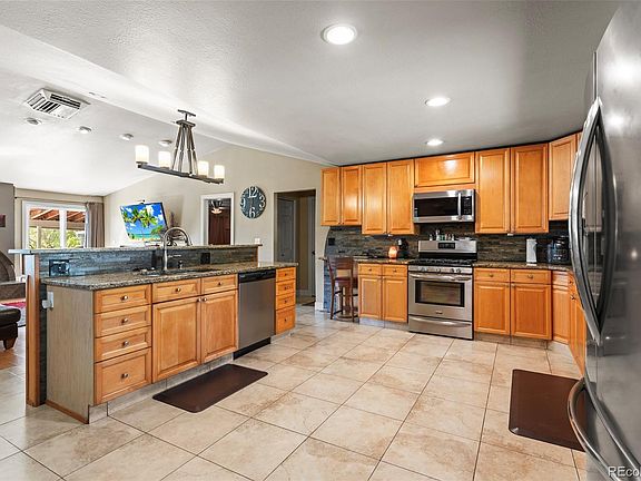 - Description: Granite Counter Tops, Breakfast Bar, Under Mount Stainless Sink, Up Dated Light Fixture, Under Cabinet Lighting, Built In Microwave, Gas Stove, Stainless Appliances Pantry, Tile Floors, Can Lights
