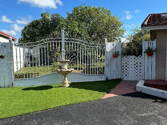 One story 3-bed 2 full baths twin home near Turnpike entrance on SW 8th St - New roof, newer appliances, fully repainted inside and out. Washer and dryer, new bathrooms, several fruit trees including mango, plum trees. Lawn service provided by landlord. Great location surrounded by shopping centers, supermarkets, etc. Security deposit may be split in 2 or 3 payments based on qualifications, credit worthiness, references, or other information provided by personal reports. Call L/A to schedule showings. RentSpree reports or similar are required including credit & background reports. Use of Storage sheds in garden area is restricted but can be included. Parking for 4 cars