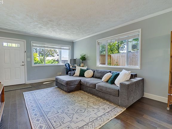 Tucked into a quiet, centrally located community, this beautifully updated end unit offers the perfect blend of privacy, comfort, and convenience. As the only unit in the building with a fully landscaped, wraparound outdoor patio and garden, you'll enjoy a peaceful retreat right outside your door—ideal for relaxing, entertaining, or enjoying your morning coffee in nature. This home is truly move-in ready, with fresh interior paint, a new bathroom vanity, and double-pane windows throughout. Step inside to a spacious, open floor plan featuring a generous living area and a dining space with sliding doors that lead directly to the private patio. The kitchen flows effortlessly into the main living area, creating a warm and inviting environment perfect for gatherings or quiet evenings at home. Two large bedrooms offer ample space and comfort, while the dedicated utility room with washer and dryer adds everyday convenience. Storage is abundant in this unit, with plenty of closet space throughout, plus an assigned storage room and a dedicated parking space included. The professionally managed community offers a host of amenities, including water, sewer, trash, exterior maintenance, parking, storage, visitor parking, and access to a community room—all covered in the monthly dues. Situated just minutes from OHSU, Lewis & Clark College, I-5, Barbur Blvd, Multnomah Village, Downtown, and an array of local trails, grocery stores, and restaurants, this home is ideally located for both convenience and lifestyle. Whether you're looking for a place to call your own or a smart investment opportunity, this unique unit is a rare find!