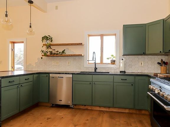 Welcome to your updated, sun-filled home! This single-story property has been beautifully improved upon. Enter into the tiled mudroom with two closets, over head storage, and coat hooks. Continue into the redesigned kitchen with custom handmade backsplash, newer stainless steel appliances, and a deep farmhouse sink. A breakfast counter finishes off this modern space. From the kitchen, you'll look into the prize of the home: a sunny, open living room with custom wood fire place, two sets of sliding glass doors, and a heat pump. Wood floors fill the entire home. Off the living room you'll find a three quarter bath for easy access. From here, you'll enter the living quarters. The primary bedroom is spacious and bright, with room for a king-sized bed and additional access to the back deck. It also includes an en suite bathroom with new tiling, a jetted soaking tub, and double vanity. To complete your country oasis, wander outside to the deck overlooking the well-placed pond or explore the trails behind the home. There's also a studio with many possibilities (home gym? art? music?), a 2-car garage, and a work shop with plenty of room for large storage. The main home includes radiant heating and spacious storage/laundry room. 10 mins to Vergennes, 25 mins to Middlebury, 35 mins to Burlington. This tasteful home has so much to offer - come see for yourself! Please don't walk property without a showing. Open House Wednesday the 12th from 5:30pm to 7:30pm!