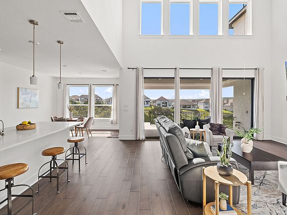 Discover the exceptional East-Facing Taylor Morrison Larimar floorplan, a standout residence that combines elegance with functionality. Nestled on a premium view lot, this home features a two-story great room bathed in natural light, creating a warm and inviting atmosphere throughout. Designed with multi-generational living in mind, the floorplan includes a convenient in-law suite on the main floor, offering privacy and comfort for guests or extended family members. As you enter, you're greeted by a grand foyer that sets the tone for the rest of the home. The formal office and dining areas provide sophisticated spaces for work and entertaining, while the game room and media room offer versatile options for relaxation and leisure. This home is a showcase of luxury, with over $150,000 in high-end upgrades that enhance its appeal and functionality. Large sliding doors in the great room seamlessly blend indoor and outdoor living, leading to a picturesque outdoor space with stunning canyon views. The backyard is a rare gem—perfectly level, providing an ideal setting for outdoor activities and landscaping, all while maintaining the advantage of the captivating view lot. Experience the best of both worlds with this thoughtfully designed and beautifully upgraded home.
