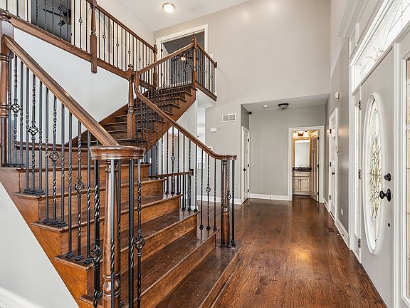 Welcome to this beautifully updated, spacious home featuring hardwood flooring throughout the main level. The modern kitchen is a chef's dream, offering ample storage, a large island with granite countertops, and sleek finishes that blend functionality with style. The inviting family room, highlighted by a stunning fireplace, opens through French doors to a dedicated office space-ideal for working from home or a quiet retreat. Upstairs, you'll find generously sized bedrooms, including a luxurious with master suite with a beautiful bathroom that flows into a large closet complete with convenient laundry facilities. The fully finished basement adds significant living space, featuring a fifth bedroom and a media room perfect for entertaining or relaxing. Outside, a trex deck off the kitchen and a variety of playsets create an excellent setting for outdoor enjoyment and family gatherings. Experience the perfect combination of modern updates and thoughtful design in this exceptional home.