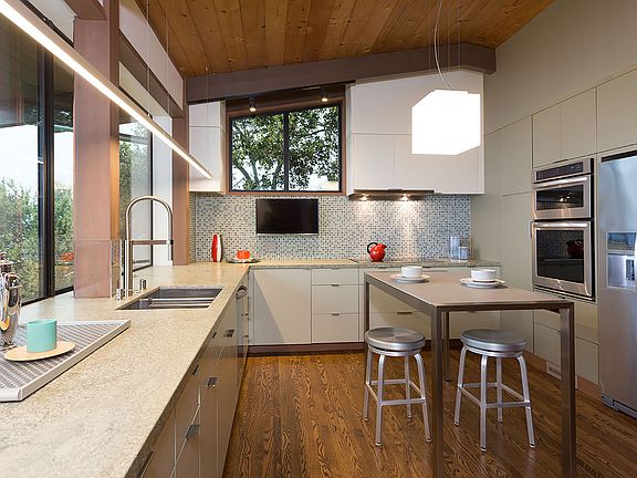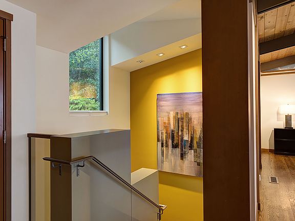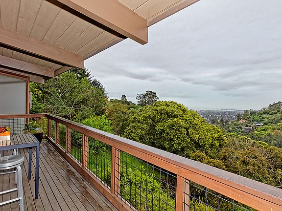 Meticulously designed Mid-Century Modern!! Renovated by renowned architects, this home capitalizes on its setting, w/broad windows & glass doors on its west-facing wall displaying unobstructed views of Claremont Canyon, the Bay & Golden Gate Bridge. High quality materials include: rich oak floors, knotty pine ceilings with exposed rafters, pristine white walls & vertically planked wood accent walls. Living/dining rooms open to a private courtyard. Chef's kitchen features matte finished granite counters, no-shadow designer lighting, ultra-smooth flat-paneled cabinetry, sleek door pulls, stainless steel high-end appliances, & a glass tile backsplash for subtle touch of color. The master has a private deck & designer bath w/a glass-enclosed, spa-like shower. Second stylish bath featuring a Duravit tub and unique cork flooring. 1045 Siler Place is tucked away like a modern sanctuary but also part of all one needs in dynamic Berkeley and beyond--Make it your home.