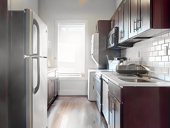 *Mint Renovated Three bedroom + 2 full bathroom apartment and stunning living room with high ceilings, beautiful wood beams and exposed Brick!* *Apartment Features:* - New dark hardwood - High ceilings throughout - All bedrooms with great closets - Two modern renovated bathrooms with tub and stall shower - Sleek open kitchen with quartz countertops and stainless steel appliances including dishwasher and mounted microwave - Washer-Dryer! *Building Features:* - Charming and well-maintained 4 story walkup building in a lovely tree-blanketed neighborhood. - Super close to multiple subway lines, and wonderful cafes and restaurants are just steps away! - Heat and water are included in the rent. - Pet-friendly *Notes:* - Some photos are virtually staged
