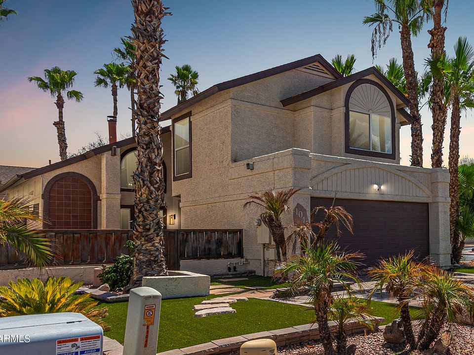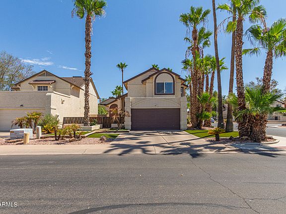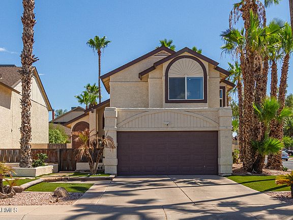 Become the proud owner of this stunning 3-bedroom, 2.5-bath residence on a desirable corner lot! Excellent curb appeal boasting a 2-car garage, pristine artificial turf, and mature date palms. Discover a bright living room with vaulted ceilings, half-moon clerestory windows, wood-look flooring, and a cozy fireplace for relaxing evenings with loved ones. The spotless kitchen features sleek quartz counters, white shaker cabinets, recessed lighting, a subway tile backsplash, SS appliances, a pantry, and a peninsula with a breakfast bar for casual dining. The main bedroom offers plush carpeting, an ensuite with dual sinks, a soaking tub, a raindrop shower, and a walk-in closet. The backyard oasis showcases a covered patio and a sparkling pool for relaxing under the sun. Make this gem yours!