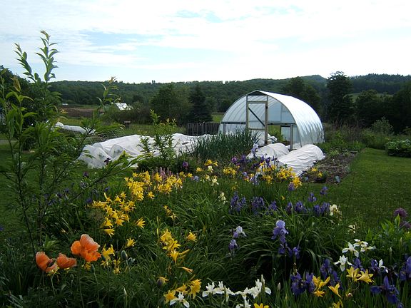 Peaceful homestead on 29 acres with custom timber-frame Colonial 2BR home, garage/workshop, and established gardens, perennials and orchard. Beautiful views and some of the best garden soil in Vermont!