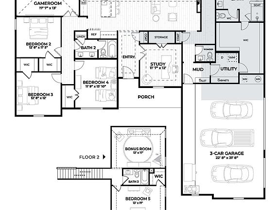 Step into the Hillside floorplan, offering 3,369 sq. ft., 5 bedrooms, and 3.5 bathrooms of luxurious living on a spacious 2-acre lot. Designed for comfort and style, the open-concept layout provides seamless flow between living spaces. The chef’s kitchen features quartz waterfall countertops, built-in Samsung appliances, soft-close cabinetry, and a large island perfect for entertaining. The living room, centered around a cozy fireplace, opens to a covered back patio ideal for outdoor dining or relaxation.