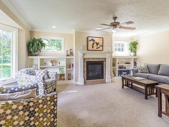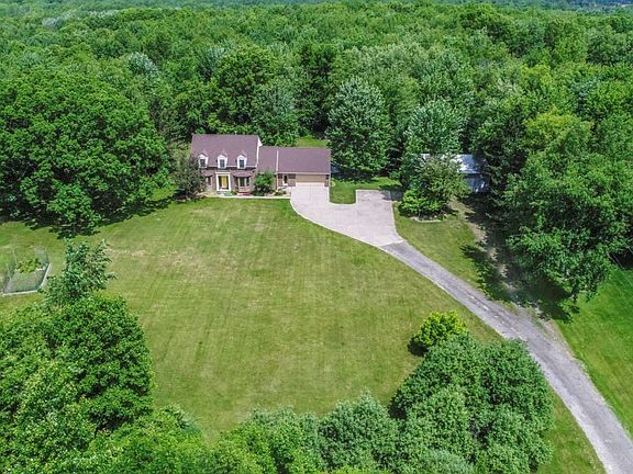 This immaculate home sets a ways back from the road for quiet privacy, on 13 beautifully wooded acres! Located in the great Haslett School District, with low Shiawassee County (Woodhull Township) property taxes, and easy access to the highway. You'll fall in love with the custom designed kitchen, which includes an abundance of two toned cabinets (cherry and cream), granite countertops, built in china cabinet, large center island with eat-at space, tile backsplash, and new stainless steel appliances (all staying with the home). The large living room offers a bay window, custom built-in shelving, crown molding and a gas fireplace. A few of the amenities here include gleaming oak hardwood flooring, tons of large windows and skylights for natural lighting, and a first floor laundry room. Upstairs are the master suite with walk-in closet and full bath, good sized bedrooms 2 & 3, and the hallway full bath. The lower level includes a family room with daylight windows, custom built-in entertainment center with lighted shelving and storage, and an office area. Every room in the home offers beautiful views of nature and woods! Outside extras include a large maintenance-free deck, a fire pit area, an outdoor wood boiler system to save on your utility costs, and a 30 x 40 pole barn with workshop area. Imagine yourself relaxing on the back deck and walking the trails thru the woods .... enjoying the peaceful beauty of nature surrounding you and your home!!